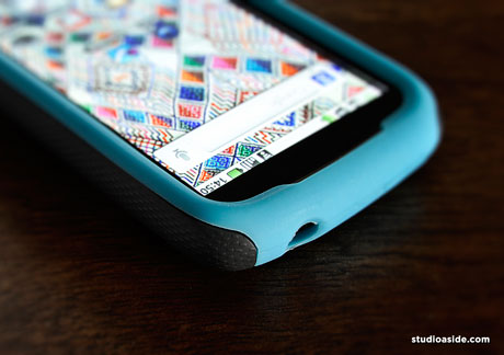 One of the things to be careful about when shooting shiny / plain surface products is that they tend to catch a lot of dust & lint – the maximum time spent in the above photographs was cleaning them up in Photoshop because even after using CyberClean, there were lots of linty things on the black surface of the speaker, the soft blue part of the Case-Mate cover and the screen of the phone as well.